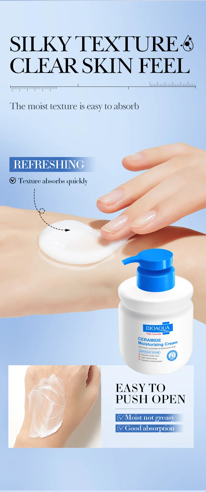• Ceramide + hyaluronic acid super-hydration formula