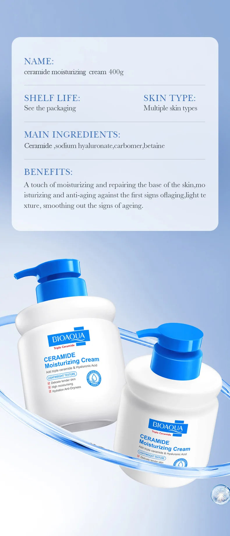 Ingredient: Ceramide ,sodium hyaluronate,carbomer,betaine